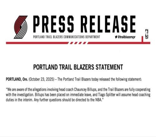 我们已经知晓有关球队主帅比卢普斯的相关指控,目前球队正全力配合调查。比卢普斯将被暂停职务,由斯普利特出任临时主教练,所有后续进展将由NBA统一处理。