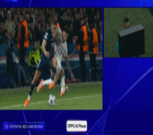 然而或许是情绪过于亢奋,半场补时第3分钟,杀得兴起的迪亚斯却在一次拼抢中,直接从背后飞铲大巴黎的王牌边后卫阿什拉夫。