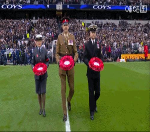 赛前默哀,双方球员为阵亡老兵默哀