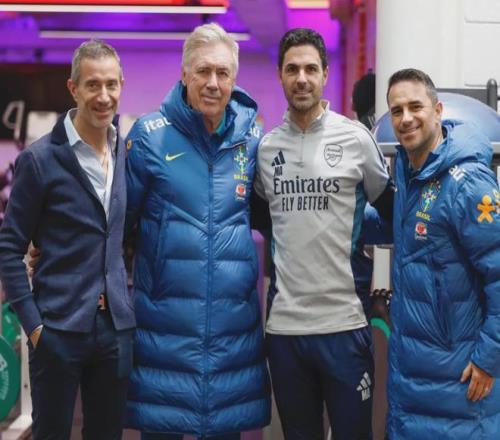 阿尔特塔和贝尔塔在伦敦会见了巴西主帅安切洛蒂。