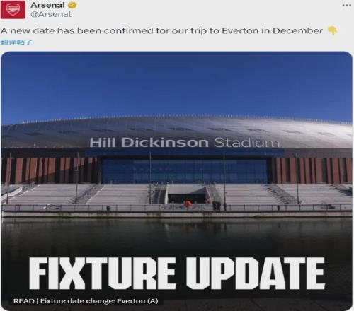 官方:阿森纳宣布英超第17轮客战埃弗顿的比赛改期,这场比赛原定于当地时间12月21日14点进行,现在提前一天,改为当地时间12月20日20点进行。