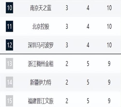 13-14分别是浙江、新疆和福建,他们都是2胜5负。只是新疆目前已经四连败了,球队的困境还是没有解决,刘炜好像已经找不到什么办法了。浙江则在帅位之后的表现不错,外教的水平还是不错的。福建则溃败北京,还是实力上的问题。