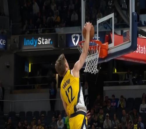 次节回来,小莫布利单点波特打成2+1,汤姆林三分跳投命中后,梅里尔倒地再助攻汤姆林双手炸扣后又进三分,骑士反超比分。内史密斯三分急停跳投命中,稳住局势,西亚卡姆抢断迪恩韦德后反击挑战再中,步行者回敬一波5-0再拿回领先优势,打停骑士。加兰连续翻身跳投命中,一人连拿6分扳平比分,杰-胡夫积极拼抢前场板,篮下拧着身子高难度反扣得手,下一回合空切篮下接球又完成360度转身单臂劈扣,真是变着花样扣?加兰连续高难度出手不中,杰-胡夫准压哨三分再中,半场战罢,步行者60-53领先骑士7分。