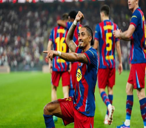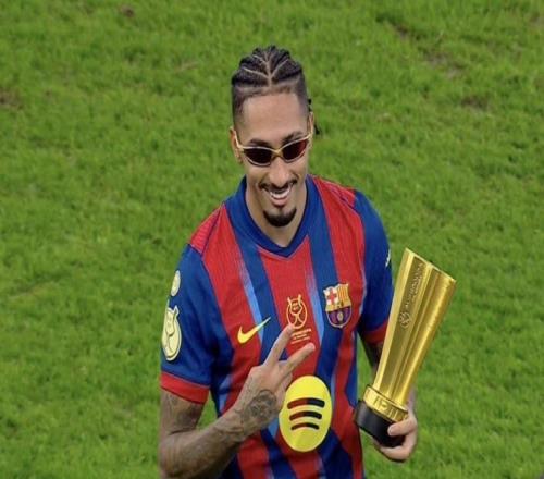 2026年西超杯决赛,巴塞罗那3-2击败皇家马德里夺冠,此役上演梅开二度的拉菲尼亚当选全场最佳球员。此役对阵皇家马德里,首发出战的拉菲尼亚在比赛第36分钟和第73分钟各入一球,上