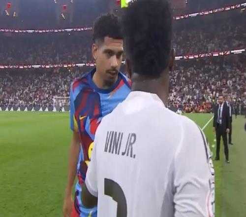 北京时间1月12日,西班牙超级杯决赛,巴塞罗那3-2皇家马德里,夺得冠军。在中场休息时,皇家马德里球星维尼修斯与此前深陷心理问题的巴萨球员阿劳霍进行了友好交谈。上半场结束哨声