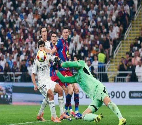 西班牙超级杯决赛展开争夺,巴萨对阵皇马。上半场,拉菲尼亚禁区首开纪录,维尼修斯一条龙破门,莱万多夫斯基单刀挑射破门,贡萨洛-加西亚扳平比分。下半场,维尼修斯兜射被扑出,亚马尔